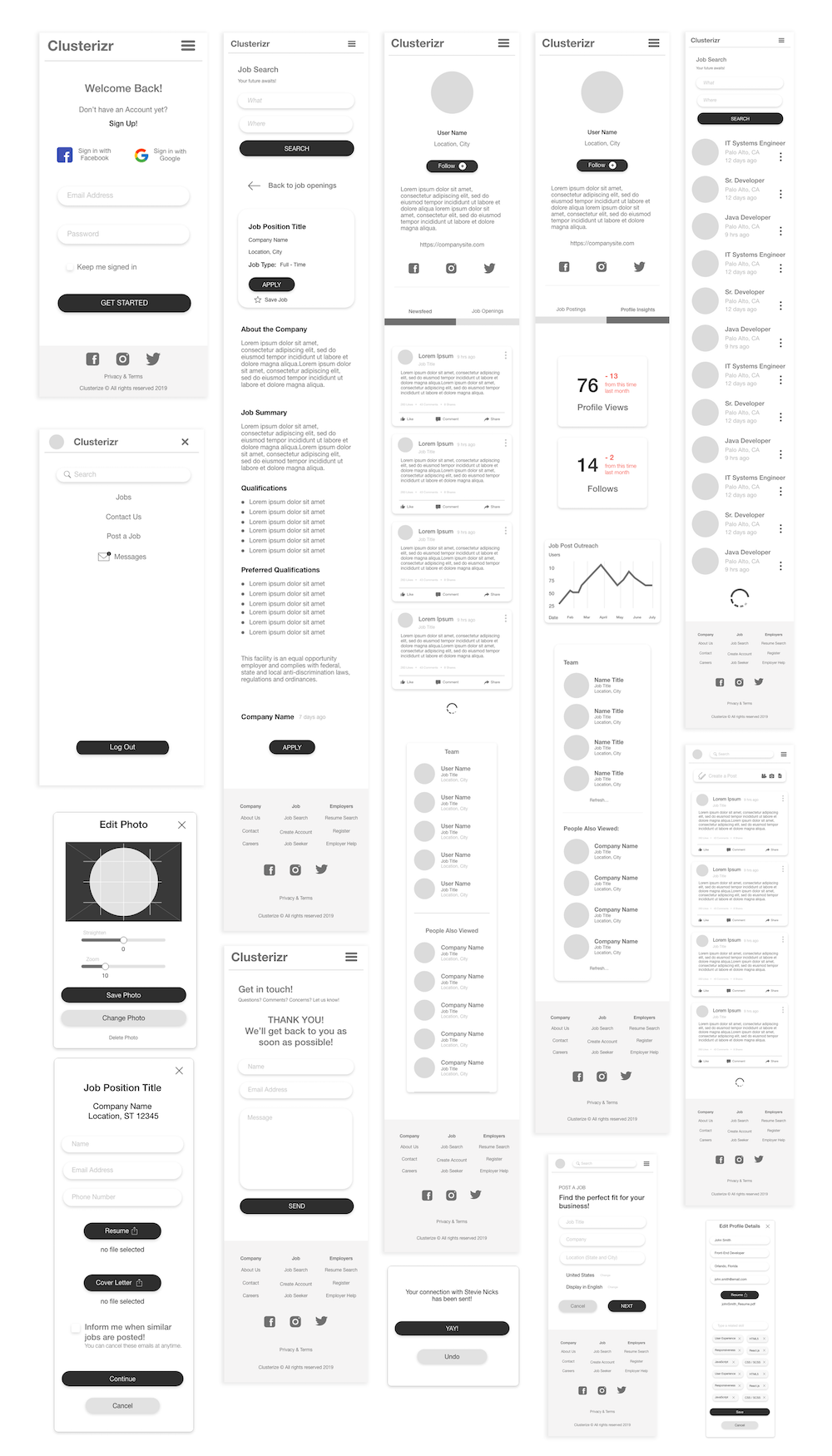 Clusterizr's mission is to ease and strengthen the connection of UCF students & alum with local companies in the tech industry. On a team of UX engineers, designers, developers, and marketing specialists, Clusterizr came to life with a "by students, for students" motto. Leading the UX team to create progressive wireframes, models, sitemaps and prototypes was an amazing, productive experience.